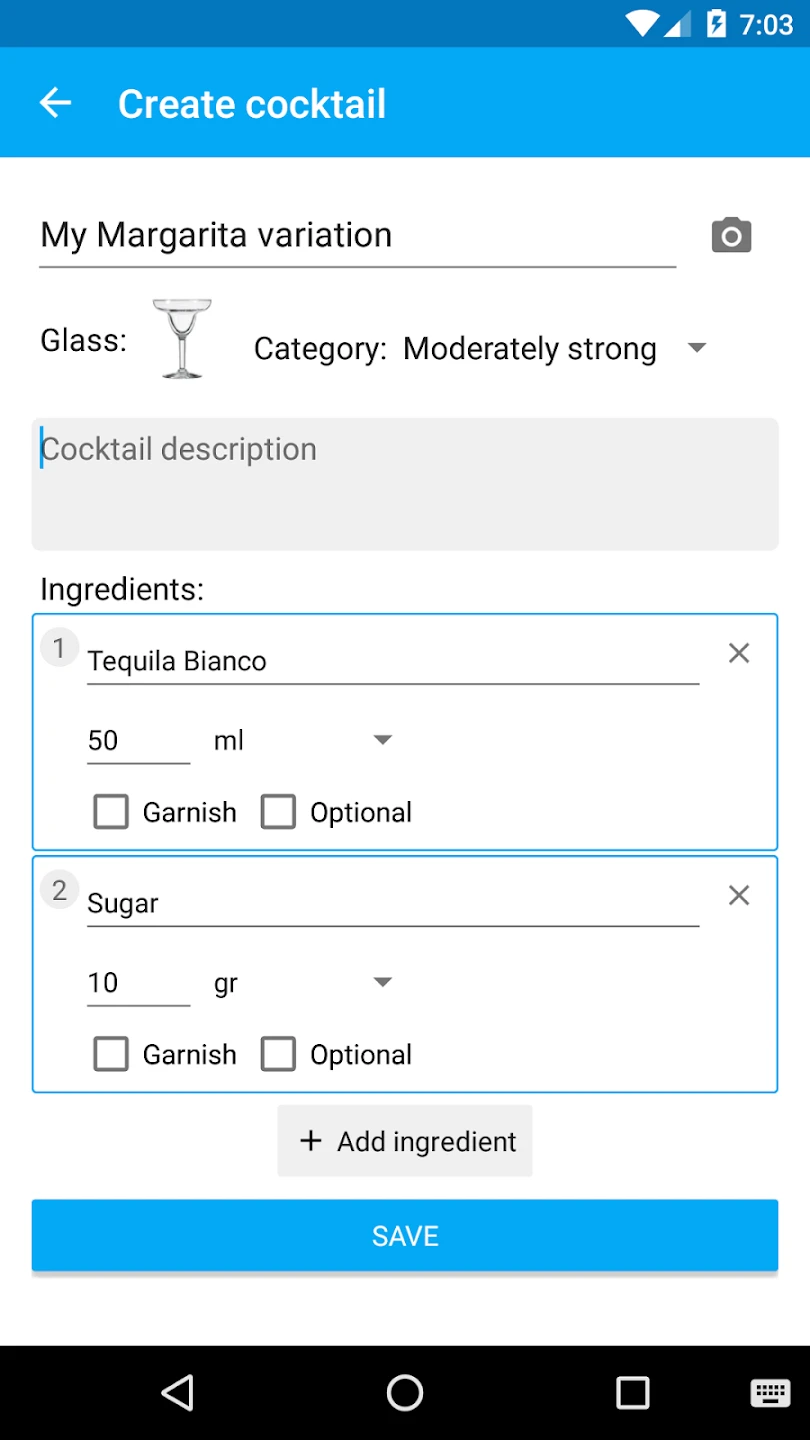 A: Definitely! My Cocktail Bar Pro allows you to easily edit or copy any recipe from its database. You can change ingredient amounts, add personal notes, adjust garnishes, or completely reinvent the drink to match your preferences.