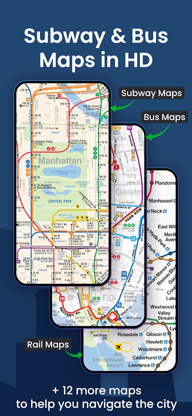 - Interactive Map View: Easily explore the NYC subway and bus networks with a clear, interactive map. This feature saves time by letting you zoom, pan, and click on lines or stops for details, making planning intuitive even for first-time visitors or busy commuters who need to get where they’re going quickly.