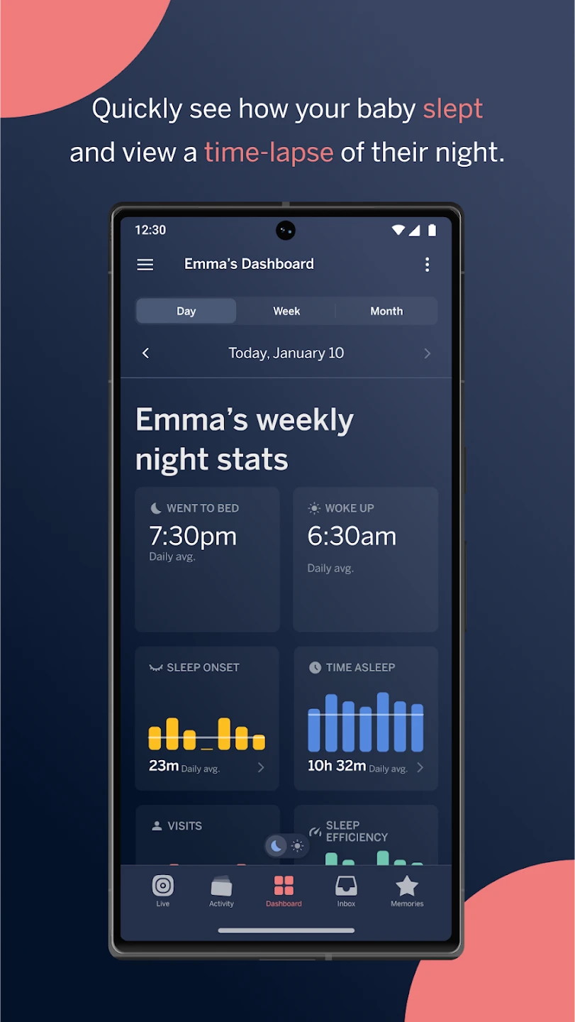 • Real-time Video Monitoring: Enjoy crystal-clear live feed from your Nanit camera directly on your phone, day or night. This feature allows parents to check on their baby instantly, providing critical reassurance without needing to be physically present or disturb their sleep, effectively making constant supervision feel immediate and accessible.