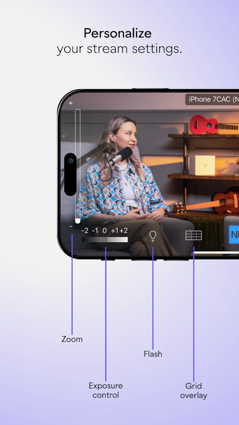 - Audio Management: Capture and transmit high-quality stereo audio alongside your video feed, supporting various microphone profiles and offering basic audio level visualization to ensure clear sound for your streams or recordings, even when relying solely on your phone’s audio input.