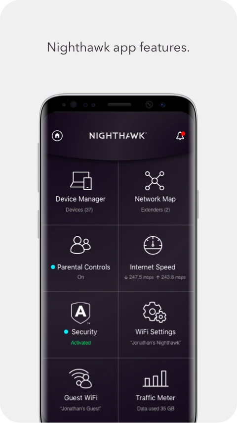 • Guest Network Management: Easily create and customize separate guest networks from your mobile device. With dedicated bandwidth controls and parental restrictions, you can safely share internet access without compromising your main network’s security.