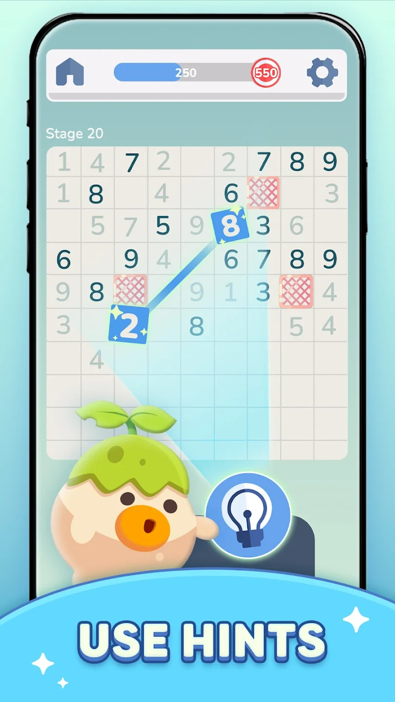 - Customization or Power-ups: Players earn coins to customize the interface theme and purchase hints. Progression unlocks new board themes, number symbols, and special power-ups that provide strategic advantages during challenging levels.
