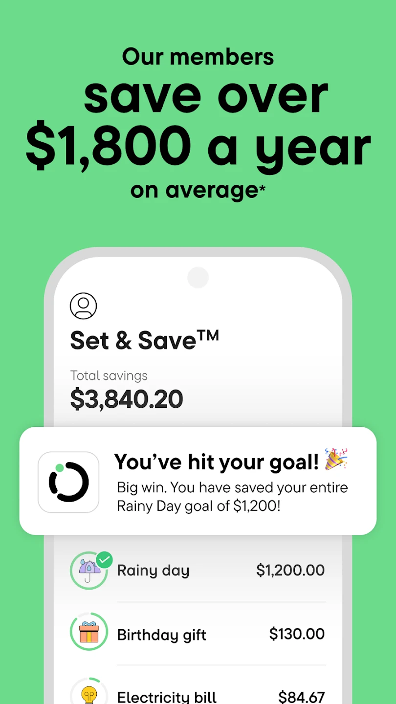 - Smart Savings Goals: Define specific savings targets (e.g., vacation fund or emergency savings) within a timeframe; the app tracks progress and suggests small, achievable steps to reach your goals faster. Its intelligent algorithms analyze your income and spending, offering personalized recommendations to accelerate savings growth.