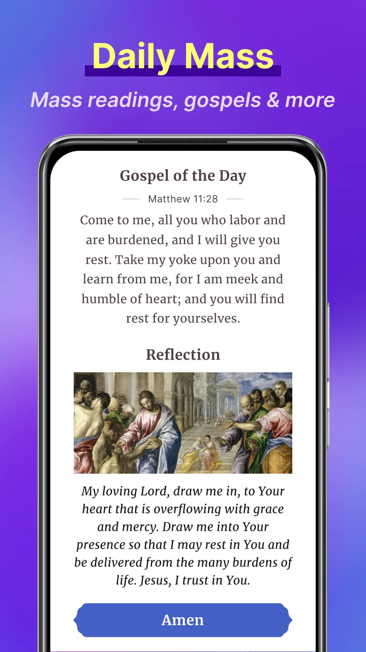 - Bible Reading & Reflection Prompts: Set reading goals, use lectionary-based readings (following the Sunday Mass readings), and access guided reflection questions linked to specific Bible verses or readings. This helps users meditate more deeply on scripture, making complex passages more accessible and applicable to daily life.