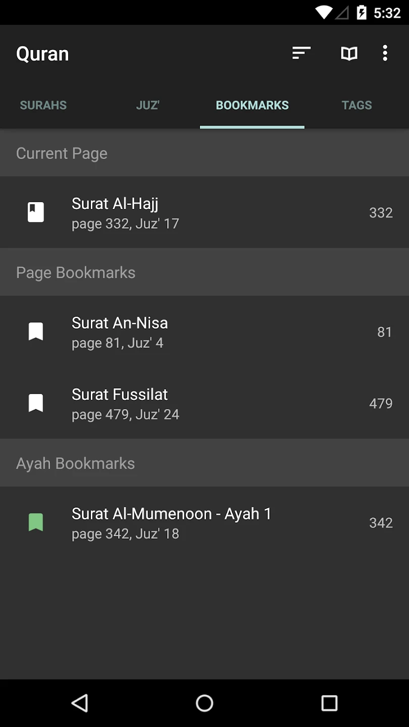 • Advanced Search & Bookmarking: Allows searching the Quran by keyword, verse number, surah name, or Bismillah. Users can easily save bookmarks, notes (like the Quran for Android notes feature), and favorite verses for later reference or study. This feature streamlines research and personal engagement with the text.