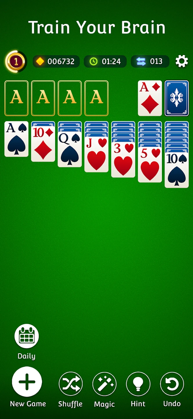- Step 3: Clear the entire tableau for victory, use hints when stuck, and track progress through daily challenges and unlockable achievements.