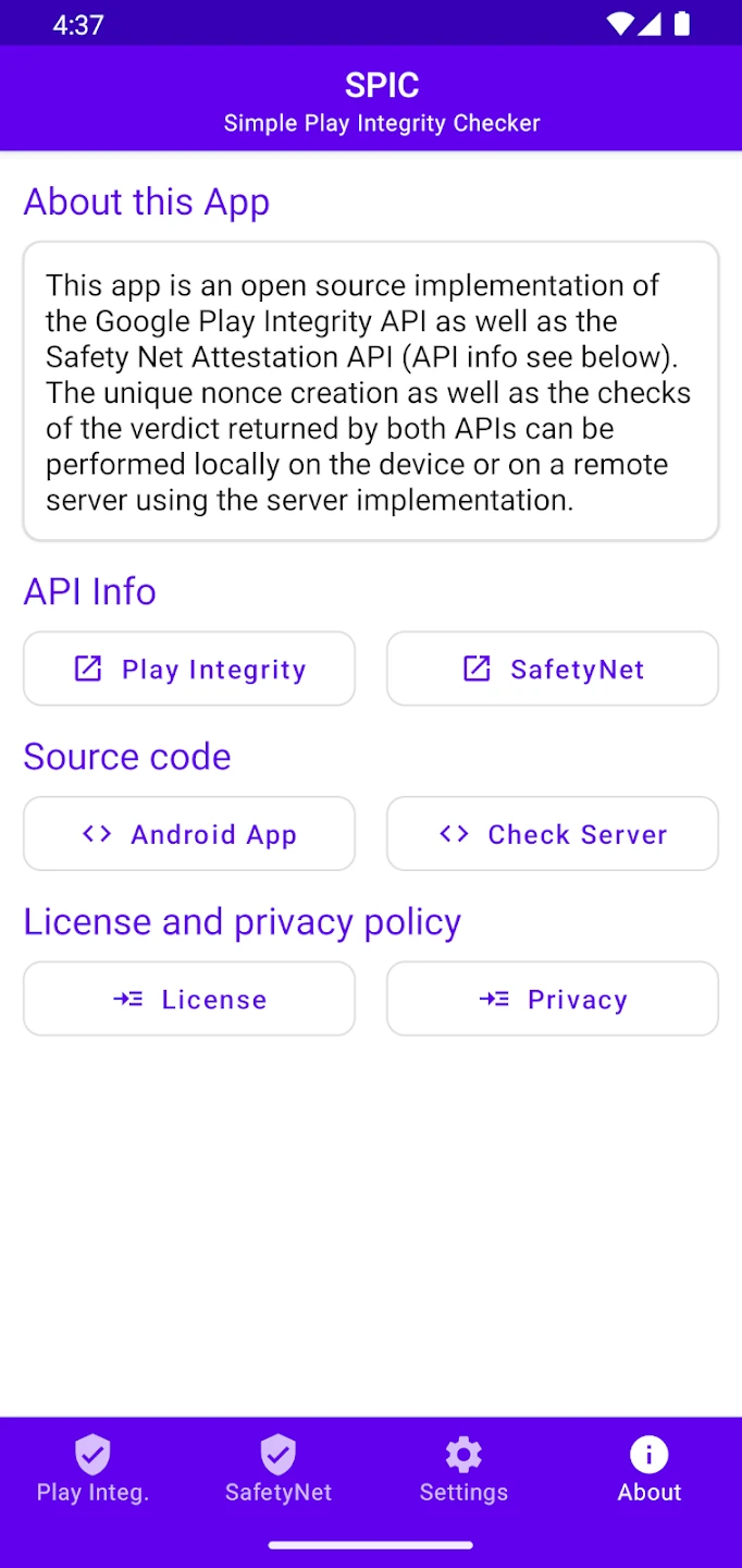 SPIC – Play Integrity Checker is a specialized utility app designed to verify the authenticity and integrity of digital assets distributed through the Google Play Store. It scans files, APKs, or content packages against official signatures or expected hash values, ensuring developers or publishers that they haven’t been tampered with during distribution. This tool is essential for professionals involved in content creation, app submission, or distribution who need to maintain security and trust in their digital products.
