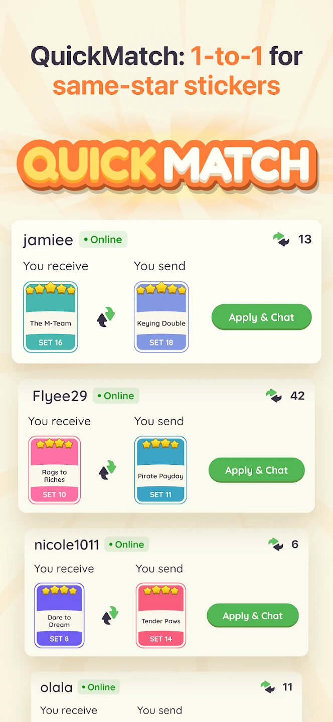 Popular among players who enjoy the competitive aspect. Features multiplayer battles against other players, similar progression through stickers, and challenging gameplay loops. |