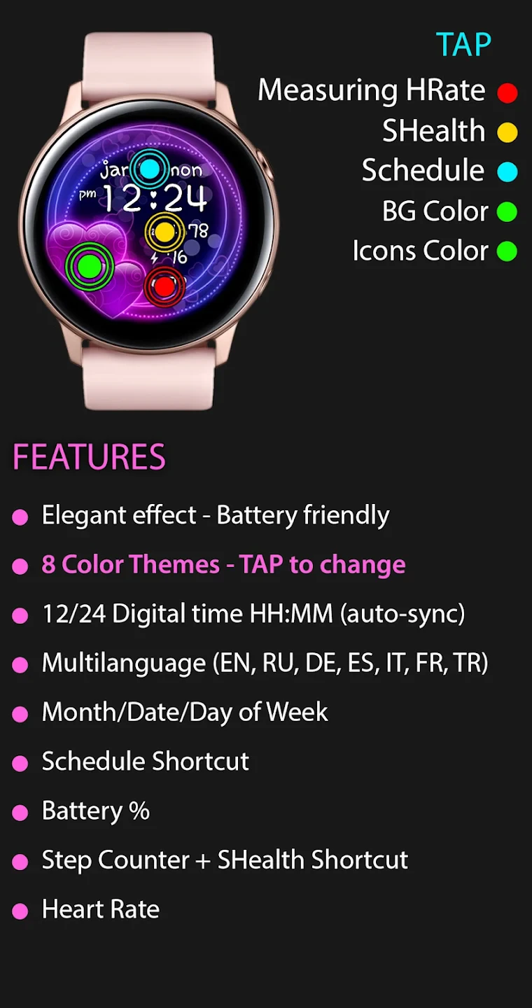- Custom Color Themes: With a vibrant palette of color options, users can personalize the hearts to match their watch’s face or current mood. This flexibility includes gradients that transition colors throughout the day, supporting both monochrome minimalist style and bold artistic expression.