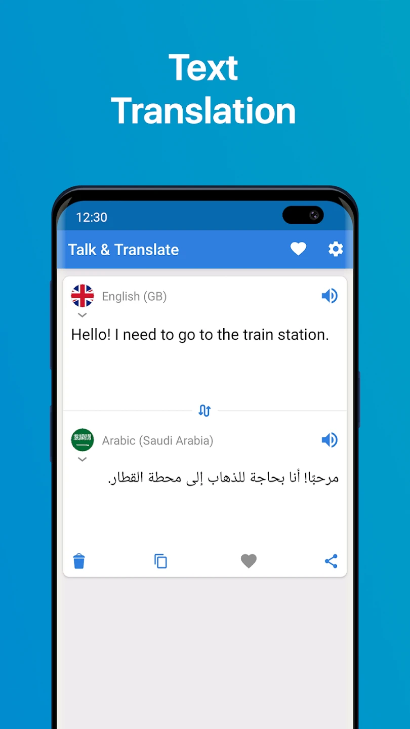 Talk & Translate – Translator is your essential tool for seamless communication across linguistic barriers on the go. It combines powerful text translation with intuitive voice translation, allowing you to instantly translate spoken words or written text between hundreds of languages. Perfect for travelers, language learners, and anyone needing quick help understanding or communicating in foreign languages.