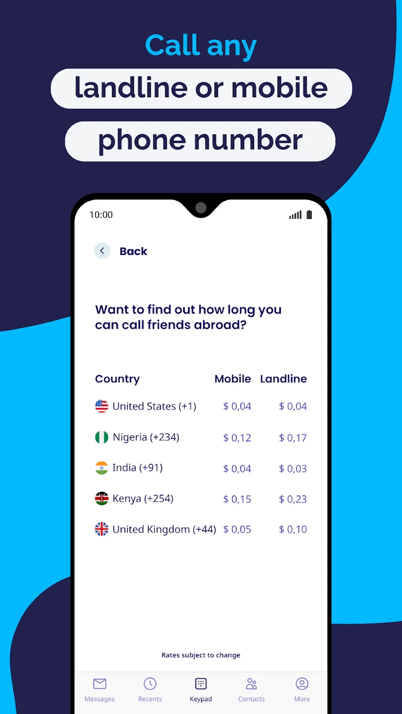 - Global Number Selection: Easily dial countries with just a tap using our intuitive map interface. This feature saves time by eliminating the need to remember complex country codes, letting you connect instantly with people anywhere.