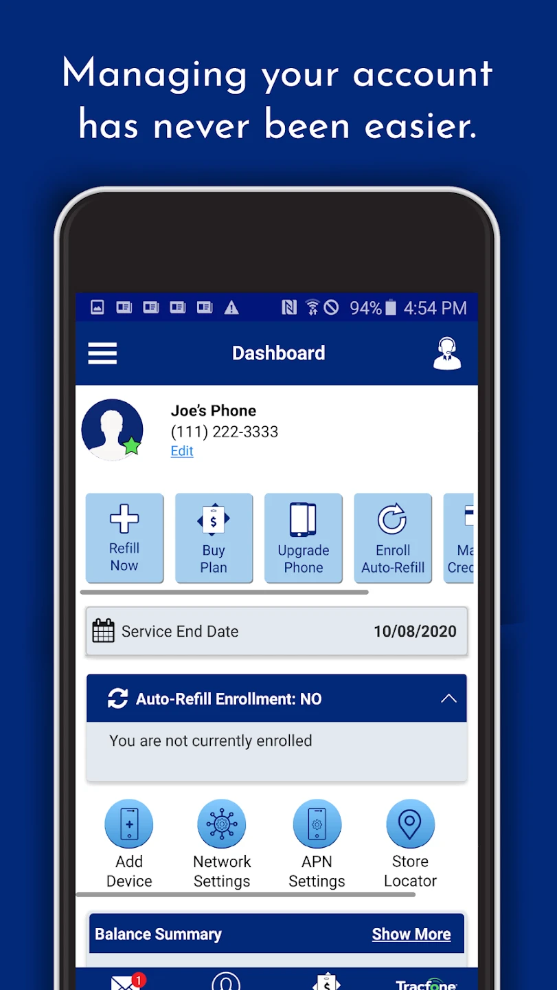 - Add Airtime & Pay Bills: Seamlessly purchase minutes, data, and talk time directly within the app, supporting various payment methods like credit/debit cards and TracFone-specific top-up codes. This functionality streamlines bill payment by eliminating the need for physical vouchers or complex phone interactions, making top-ups quicker and more convenient.