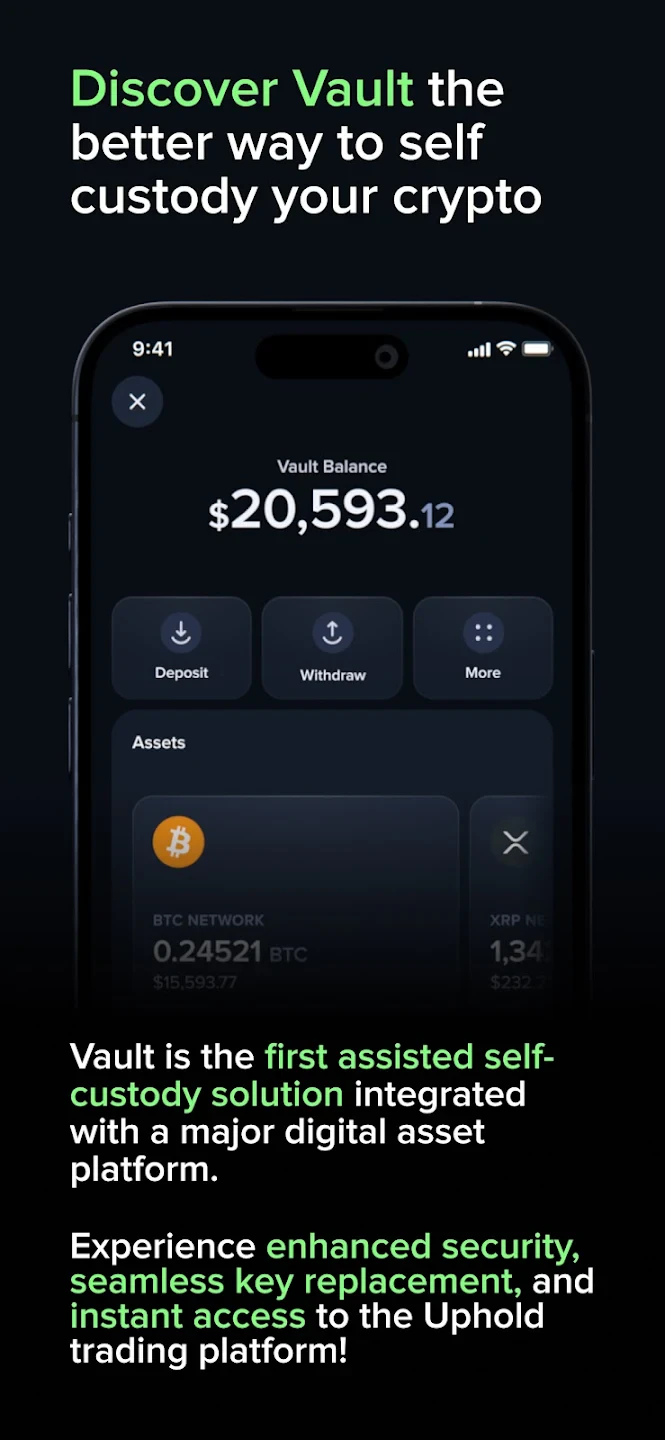 - Secure Account Management: Uphold’s core feature ensures a safe and regulated experience for managing your digital assets. It offers multi-layered security, including bank-level encryption, instant freezing capabilities, and robust two-factor authentication, providing peace of mind when trading or storing funds.
