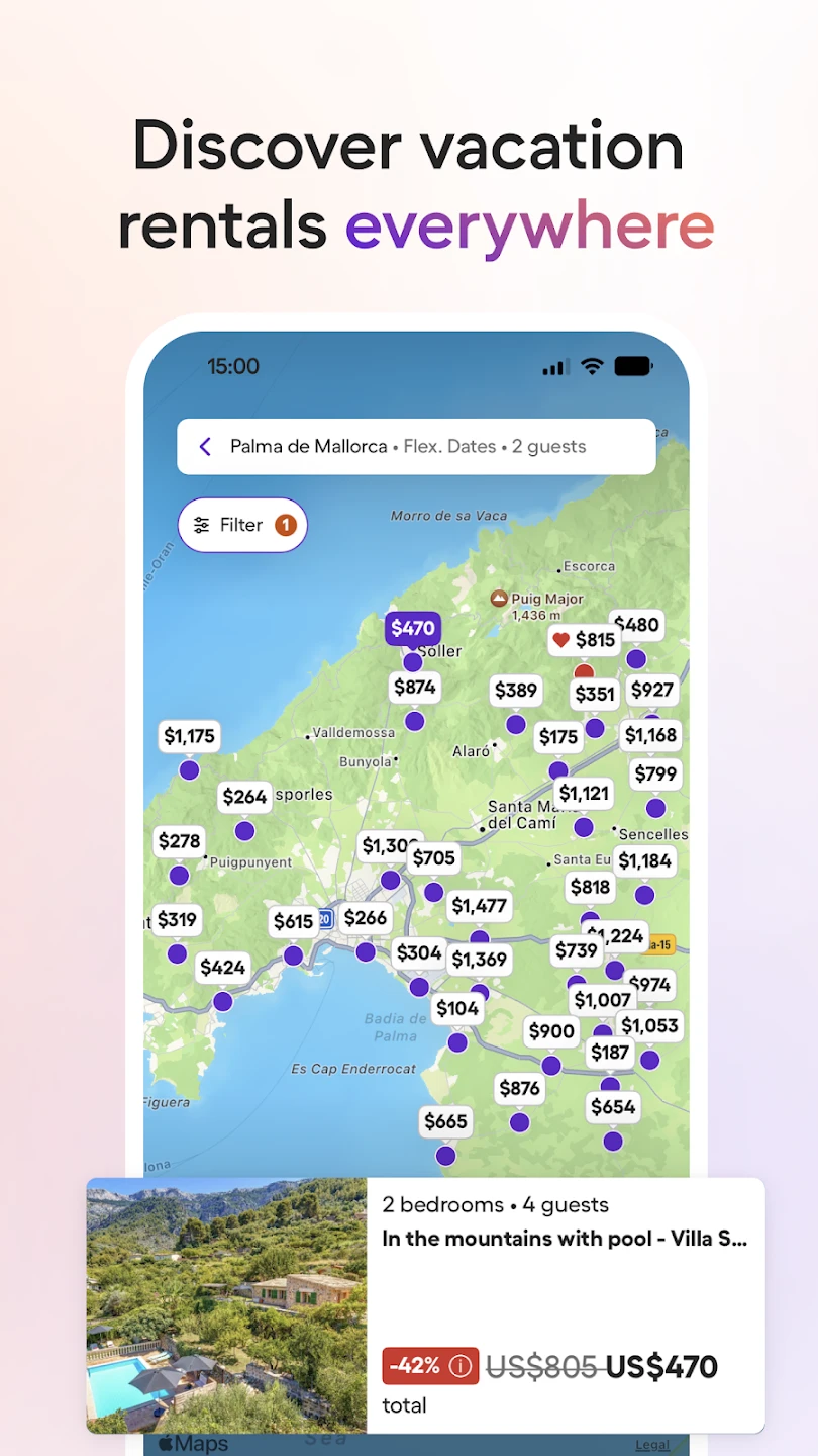 Vacation Rentals – HomeToGo is an intuitive app designed to simplify the management of rental properties. It provides users, often homeowners or property managers, with tools to handle bookings, payments, and guest communications efficiently, streamlining the entire vacation rental experience.