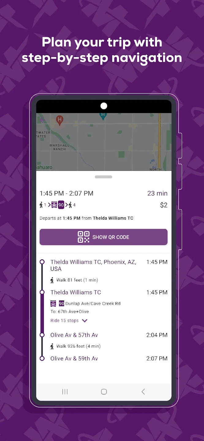 - Trip Planning: Plan routes and view optimal transit options between any two points on a map. This feature saves time by automatically suggesting transfers, costly parking alternatives near transit stations, and routes that minimize walking time.