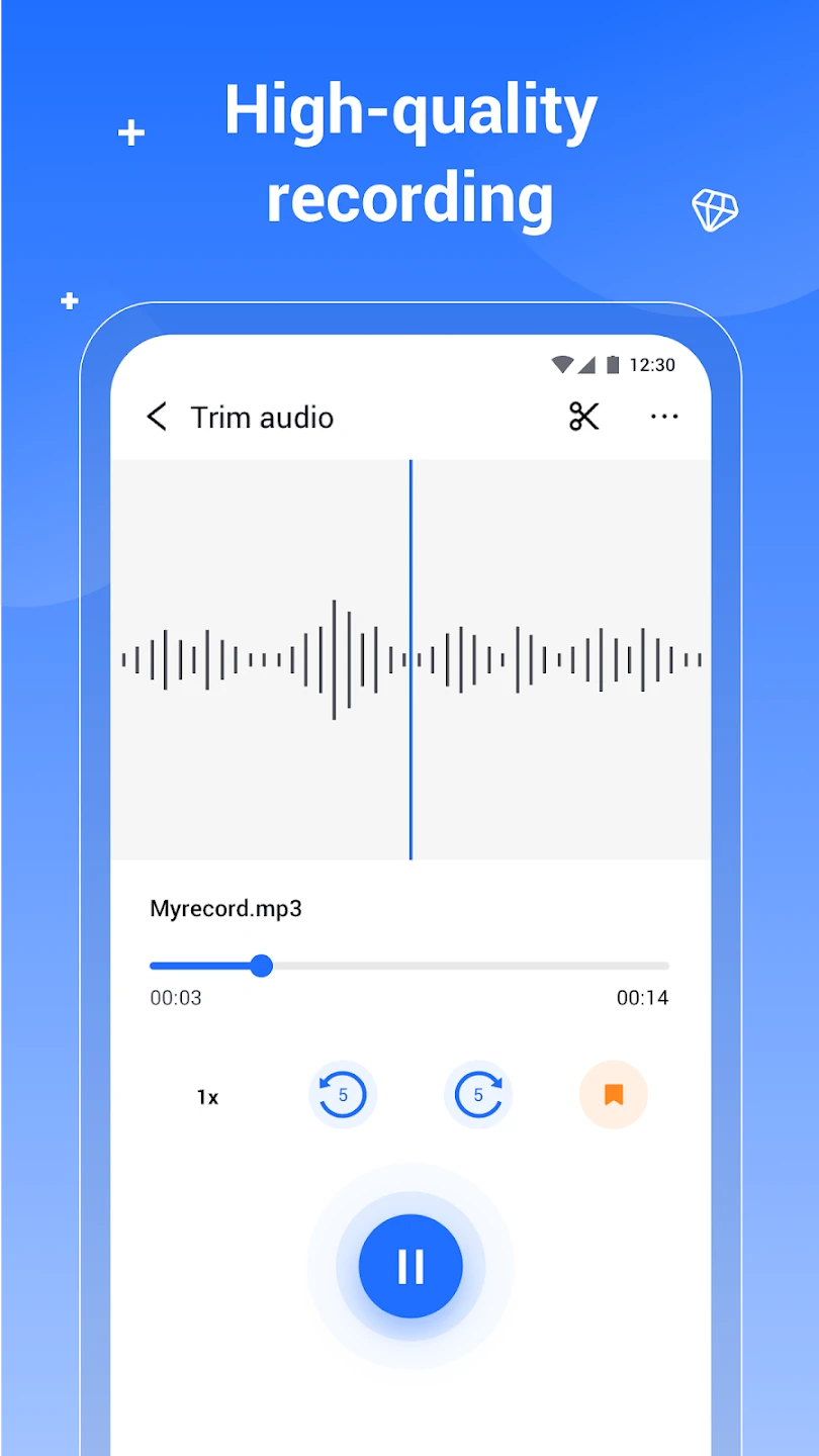 - Edit & Trim Audio Clips: Easily cut out silences, mistakes, or unwanted parts directly within the app. Features like precise selection tool let users trim audio with millisecond accuracy, improving clarity and workflow efficiency for content creators and podcasters.