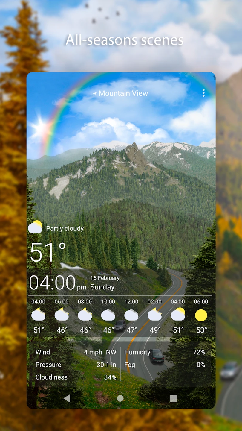 - Seamless Automatic Updates: Continuously monitors the weather, updating the wallpaper periodically as conditions change throughout the day (e.g., from sunny morning to cloudy afternoon). This is incredibly convenient and practical, especially during rapidly changing weather like approaching storms, ensuring your wallpaper always reflects the current situation without manual intervention.