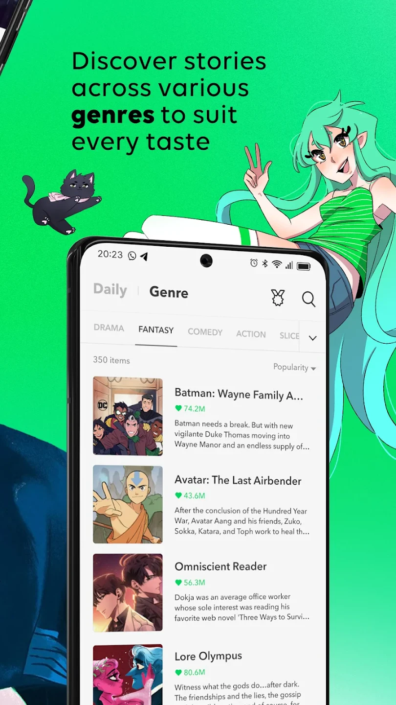 - Diverse Genre Library: WEBTOON: Manga, Comics, Manhwa provides access to a wide range of genres like action, romance, thriller, and slice of life from both international manga and Korean manhwa. This ensures there’s something for every reader’s taste, keeping the discovery experience fresh.